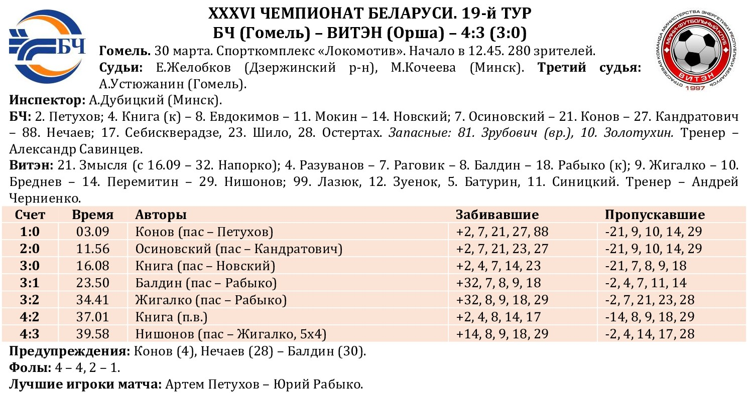 19-й тур XXXVI чемпионата Беларуси. Итоги