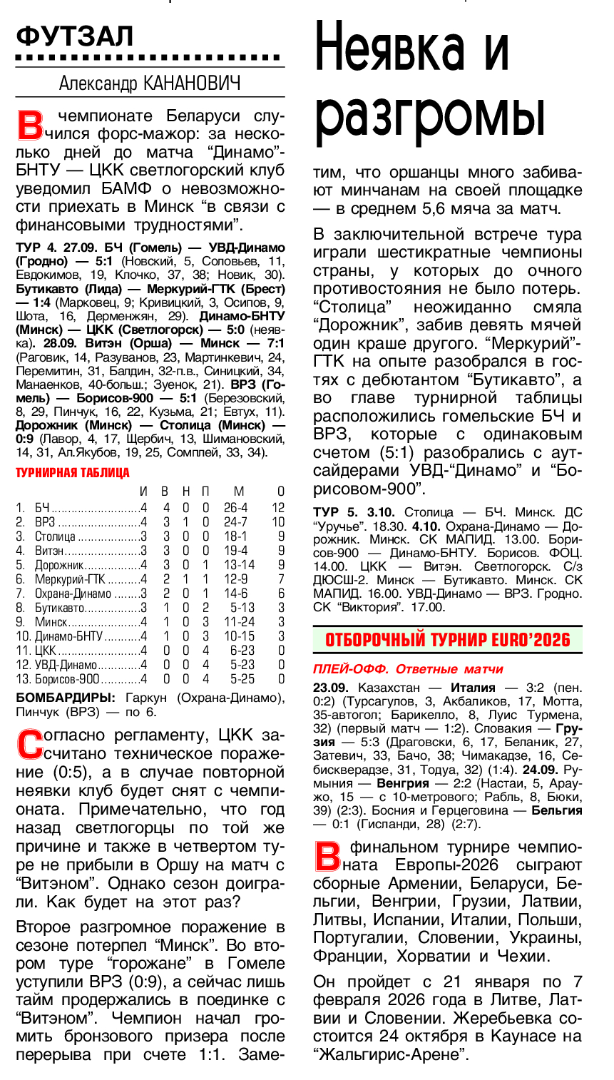 4-й тур XXXVII чемпионата Беларуси. Итоги
