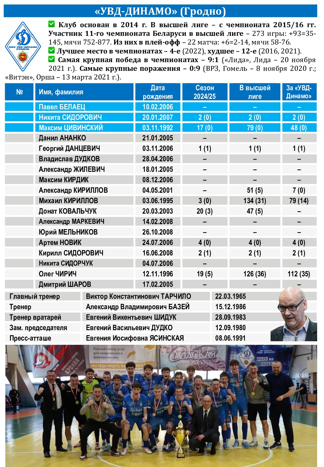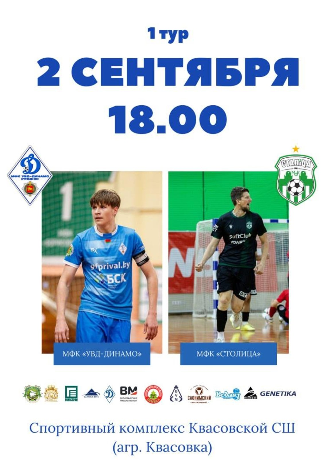 XXXVII чемпионат Беларуси по мини-футболу стартовал в субботу, 30 августа, пятью матчами в Бресте, Светлогорске, Минске, Лиде и Борисове. Первый мяч нового первенства записал в свой актив Алексей Пинчук из ВРЗ. «Столица» же стартует только во вторник, 2 сентября. Поединок с «УВД-Динамо» пройдет не в хорошо знакомой гродненской «Виктории», а в 22 километрах от областного центра, в агрогородке Квасовка, в спортзале местной школы. Состав соперника по сравнению с прошлым сезоном разительно изменился. Команду покинули практически все ведущие футболисты (остались только Цивинский, М.Кириллов и Чирич), места которых заняла молодежь, выигравшая весной юниорский чемпионат Беларуси. Остался и легендарный Виктор Тарчило, под руководством которого наш Александр Чибисов отыграл 6 с половиной сезонов и завоевал три чемпионских титула. Не сыграет за «Столицу» Ильнур Исламов, который вынужден пропустить матч по причине удаления в последнем матче прошлого сезона. Зато увидеть в деле сможем сразу пятерых дебютантов – Виталия Хвесько, Дмитрия Шимановского, Янника Сомплея, Дениса Семенюка и Ивана Дроздова. Будет интересно! Начало матча – в 18.00. Наблюдать за ним можно на youtube-канале БАМФ вот по этой ссылке:
