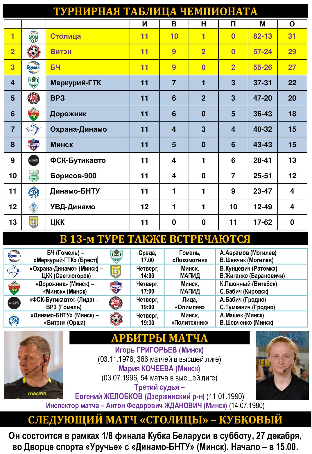 Анонс 13-го тура. «Столица» – «Борисов-900»