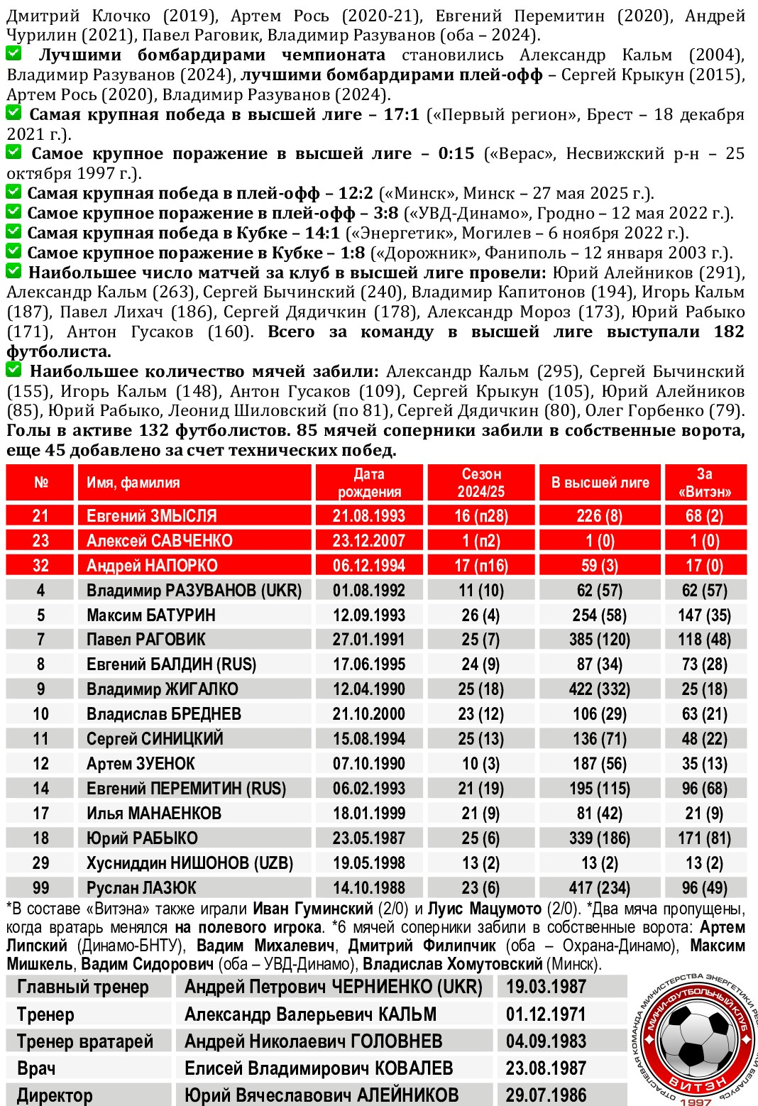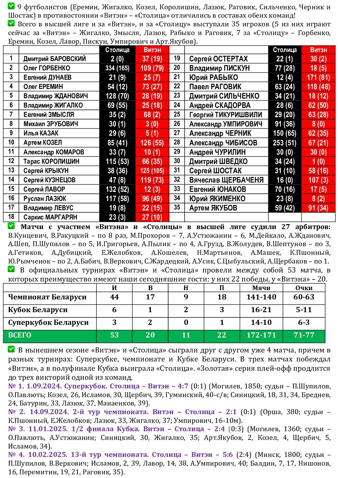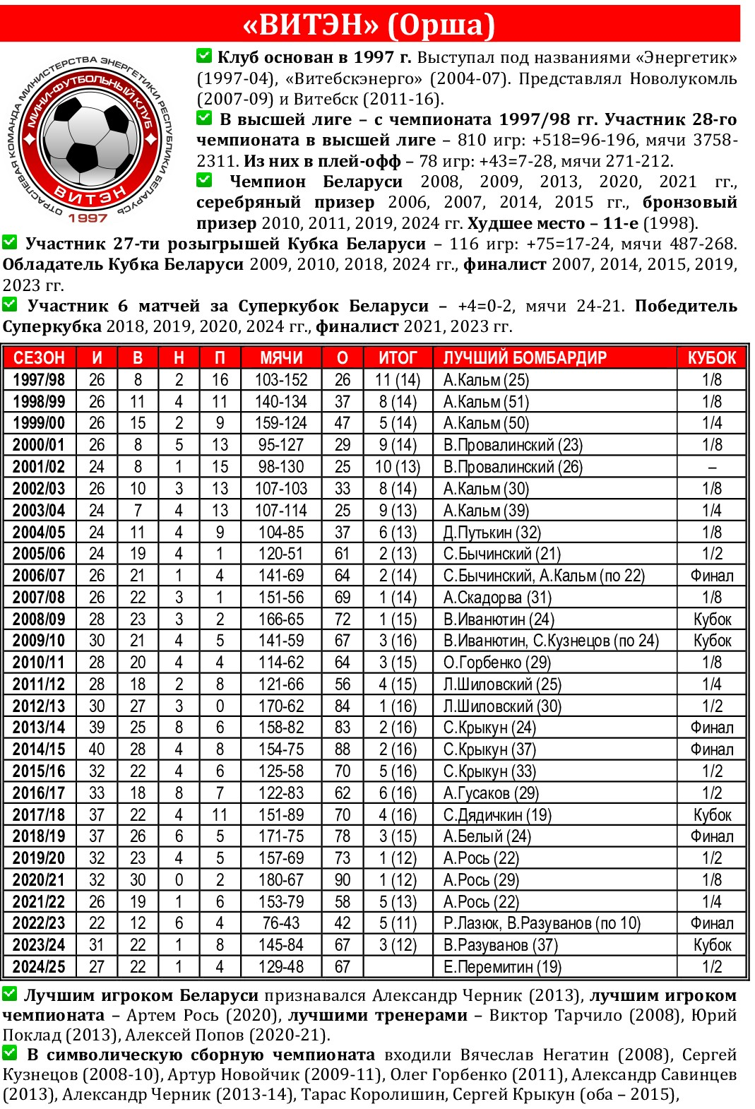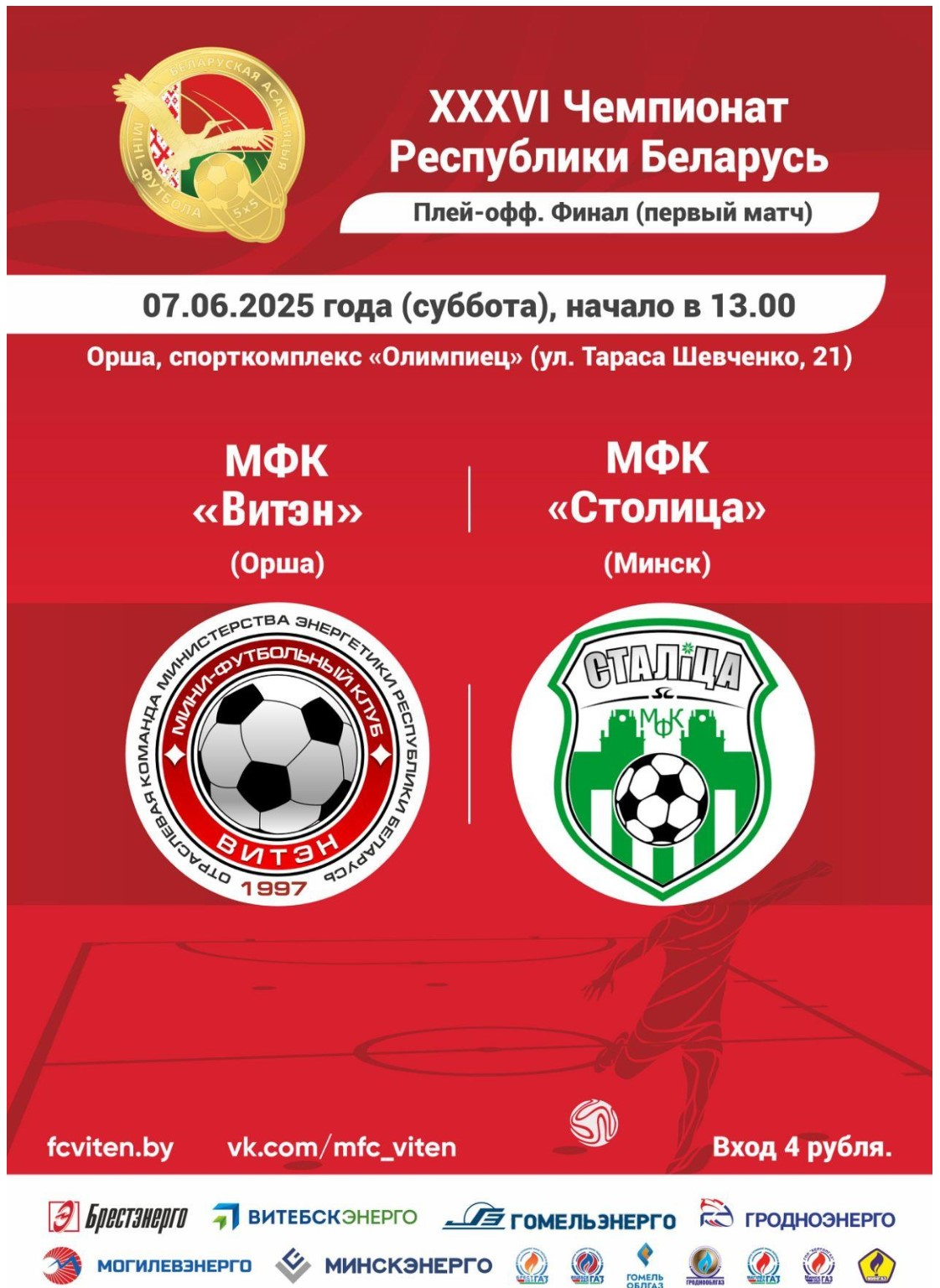 Спустя 11 лет вывеска финальной серии чемпионата Беларуси повторилась: «Витэн» встречается со «Столицей». В далеком уже 2014 году плей-офф был впервые опробован в нашем чемпионате, дебютном для «столичников». И тогда произошло практически невероятное с теперешних точек зрения: в борьбе за «золото» сошлись 4-я («Витэн») и 6-я («Столица») команды по итогам двухкругового турнира. Серия получилась драматичная, состоявшая из максимально возможных 5 матчей. Включившая в себя перенос одной из встреч из-за массовой болезни игроков, победу в третьем поединке в дополнительное время, волевой перелом и определение чемпиона в серии послематчевых пенальти. Решающий мяч с 6-метровой отметки у «столичников» забил Сергей Кузнецов. С тех времен много воды утекло. Из тех футболистов, которые участвовали тогда в разборах за золотые медали, сейчас на площадку может выйти только Сергей Лавор, который, правда, во всех пяти матчах серии просидел в запасе у «Витэна» как молодой игрок (по регламенту в протоколе должен был быть минимум один футболист 1993 года рождения и младше, и тогда разрешалось заявить на матч 13 игроков, если двое молодых – то 14). По иронии судьбы, защищающий теперь цвета «Столицы» Лавор и сейчас в субботу против «Витэна» не сыграет, поскольку из-за полученных трех желтых карточек первый матч «золотой» серии вынужден пропустить. Противостояние стартует 7 июня в оршанском спорткомплексе «Олимпиец» и начнется в 13.00. Все билеты на игру уже проданы, кроме тех, что зарезервированы за болельщиками «Столицы». Матч покажет в прямом эфире телеканал «Беларусь 5».