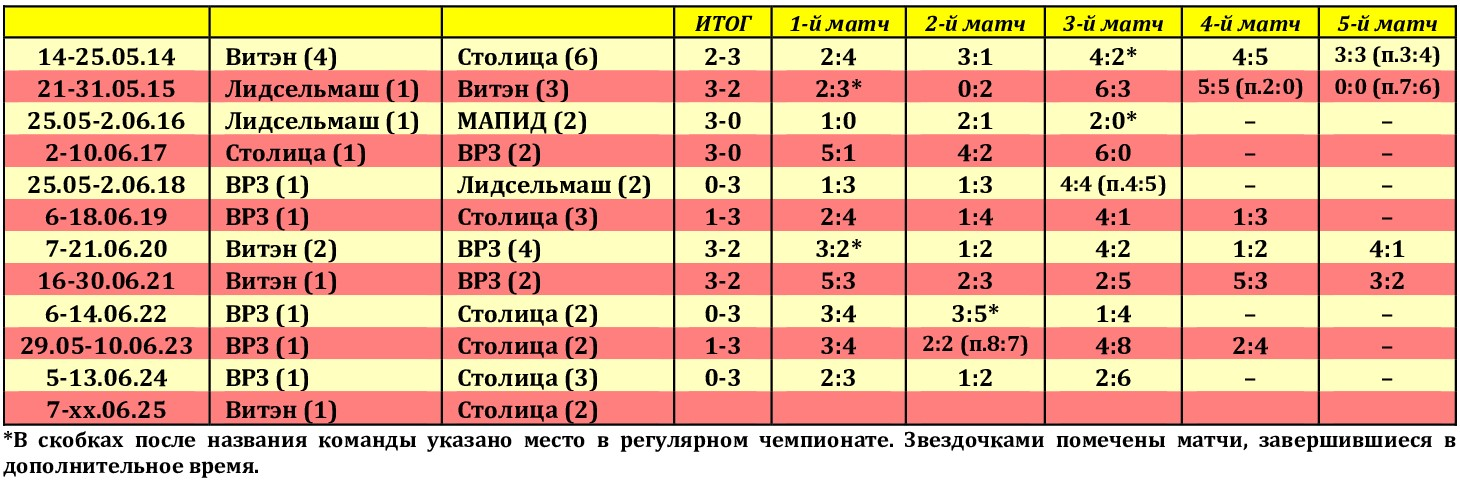 ВСЕ ФИНАЛЬНЫЕ СЕРИИ ПЛЕЙ-ОФФ ЧЕМПИОНАТОВ БЕЛАРУСИ (2014-2025)